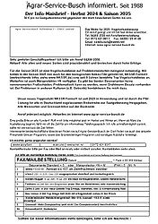 Ganz ganz wichtig Bitte Text komplett lesen! Das war die Saison 2025 Ich hoffe das alle meine Kunden gut durch das Jahr gekommen sind. Seit 2020 präsentieren wir erfolgreich eine Produktinnovation von Agrar-Service-Busch. NKSSR Formel+. Eine Saatgut- und Maissaatgutbeize gegen Vogelfraß, die im konventionellen Anbau und für Bio Betriebe Fibl gelistet und seit Februar 2025 EASY-Cert(Österreich) zugelassen ist (Bio Zulassung). Das Forschungsinstitut für biologischen Landbau FiBL ist eine der weltweit führenden Forschungseinrichtungen zur biologischen Landwirtschaft. Bei allen Bio Verbänden ist NKSSR Formel+ zugelassen (Bioland, Demeter, Naturland, EU Bio und weitere). Am 7.12.2025 besteht die Partnerschaft mit Traktorpool 20 Jahre. Wir haben in dieser Zeit viele Gespräche zur Optimierung des Vertriebs über das Traktorpool Portal geführt. Dadurch wurde die Vermarktung der Geräte verbessert. Dafür bedanke ich mich beim Traktorpool Team herzlichst. Macht weiter so. Der Preis der Geräte auf Anfrage ist Fix!!!!! Details vor Ort. !!!!!!!!!!!Achtung: Sollten Sie nicht innerhalb von 24 Stunden eine Antwort auf Ihre Anfrage bekommen!!!!!!!!!!!!!!!!! !!!!!!!!!!!!!!!!!!!!Wählen Sie bitte die Telefon Nr 04208 2558 (Anrufumleitung auf Mobil)!!!!!!!!!!!!!!!!!!!!!!!!!!!!!! Alle Preisangaben sind grundsätzlich ohne 19% Mwst!!!!!!!!! Für Exporte gilt Steuerfrei mit gültiger Steuer Nr. des jeweiligen Landes. Ausserhalb EU bitte mit gültiger EORI Nr. sonst 19% Mwst! Liegt keine gültige Steuer Nr. vor gilt der Preis +19% Mwst!! Die Inserate dienen der Angebotsinformation. Nur der Kaufvertrag ist massgebend über das Gerät. Telefonische Erreichbarkeit von 7.30 Uhr-19.00 Uhr !!!!!!!!!!!!!Sonntags ist absoluter Ruhetag.Ich bitte um Achtung der Sonntagsruhe!!!!!!!!!!!!!!!!!!!!! Notfälle bitte auf Mailbox Meine Telefonanlage Schaltet bei Unseriösen Anfragen Automatisch ab (Was ist letzter Preis). Mailanfragen ohne Tel Nr oder mit dem Hinweis bin Telefonisch nicht erreichbar, können sich die Anfrage sparen. Achtung : Uns ist es nicht möglich alle schriftlichen Anfragen zeitgleich zu antworten. Sollten Sie Interesse an einer unserer Maschinen haben, können Sie die Anfrage auch gerne telefonisch unter 0172 421 0017 vornehmen. An alle Interessenten meiner Produkte!!!!!!!!!!!!! Da die Geräte an verschiedenen Standorten eingelagert sind, ist unbedingt ein Termin mit mir zur Besichtigung zu vereinbaren. Fahren Sie bitte nicht ohne Termin los. Das ist leider schon öfter vorgekommen!!!!!!!!!!! Es erspart allen Enttäuschungen. Meine Tel. Nr nochmal 04208 2558 mit Anrufweiterleitung bevor Sie Starten!!!!!!!!!!!!!! Für Schreib- & Setzfehler wird grundsätzlich keine Haftung Übernommen. Zeit ist kostbar. Agrar-Service-Busch ist deshalb immer stets bemüht aussagekräftige Angaben über den Zustand und die Ausrüstung der Maschinen zu machen. Da dies auch auf Angaben von Drittanbietern zutreffen kann, bzw. Fehler auch von uns nicht auszuschließen sind, sind alle Angaben unter Ausschluss jeglicher Gewährleistung zu sehen. Vielen Dank für Ihr Verständnis. Seit 7.12.2005 ohne Unterbrechung bei Traktorpool erfolgreich Integriert.