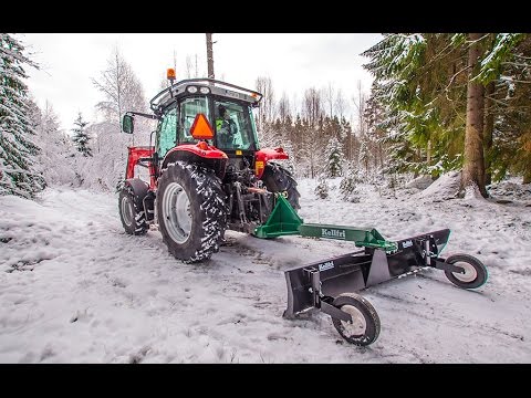Die Stützräder können einfach montiert und mit einem Stift in der Höhe eingestellt werden, um den richtigen Arbeitswinkel und die richtige Arbeitshöhe für das Räumen von nicht gefrorenem Boden, das Nivellieren von Schotterstraßen usw. auszuwählen. Der Pflugarm ist an einem Dreipunktgestänge montiert.