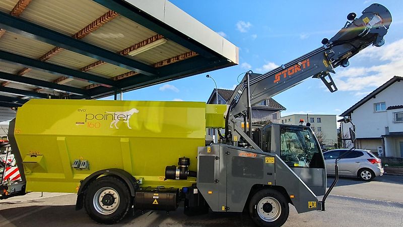 Storti Pointer 160 EVO 2 AS, 16m3 Volumen. Die effiziente Fütterungslösung für den Milchvieh- und Mastbetrieb. Schlagkraft, Qualitätsmischung und der Komfort kommt nicht zu kurz. Optimale Übersicht der ganzen Maschine, direkter Blick auf Entnahmefräse, so ist ein sicheres und effizientes Arbeiten gesichert. Überzeugen Sie sich selbst und testen Sie unsere Demomaschine.