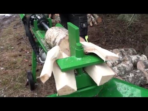 Der Holzspalter wird mit zwei Händen gewartet. Verwenden Sie zum Teilen ein Zwei- oder Vier-Segment-Messer, dessen Höhe in zwei festen Positionen einstellbar ist. Die Maschine ist auf eine bequeme Arbeitshöhe eingestellt. Die Spaltgeschwindigkeit beträgt 1 dm / s und die Rückführgeschwindigkeit ist doppelt so hoch. der antrieb wird über solide schienen geführt, die eine störungsfreie Bewegung gewährleisten.
